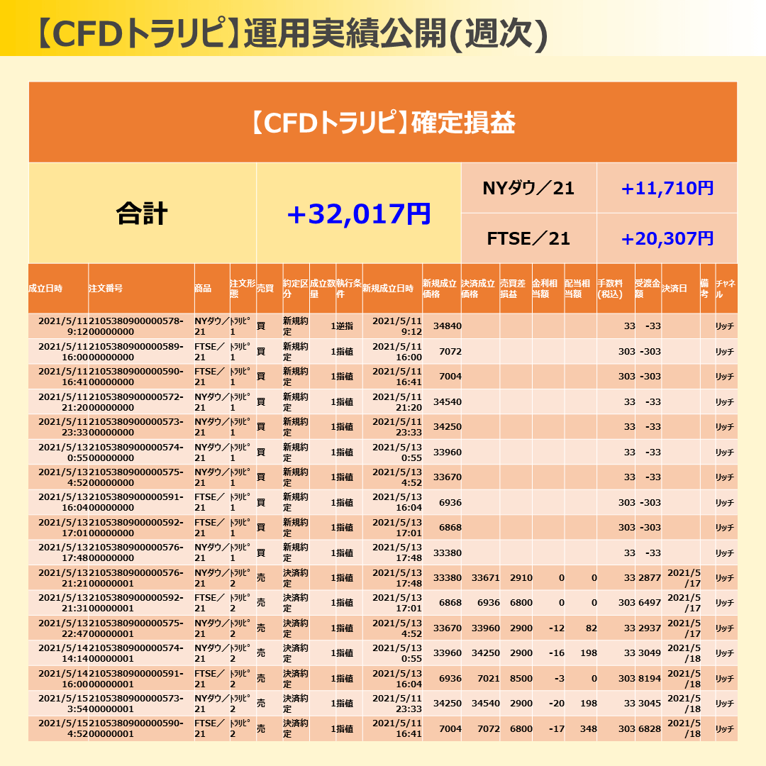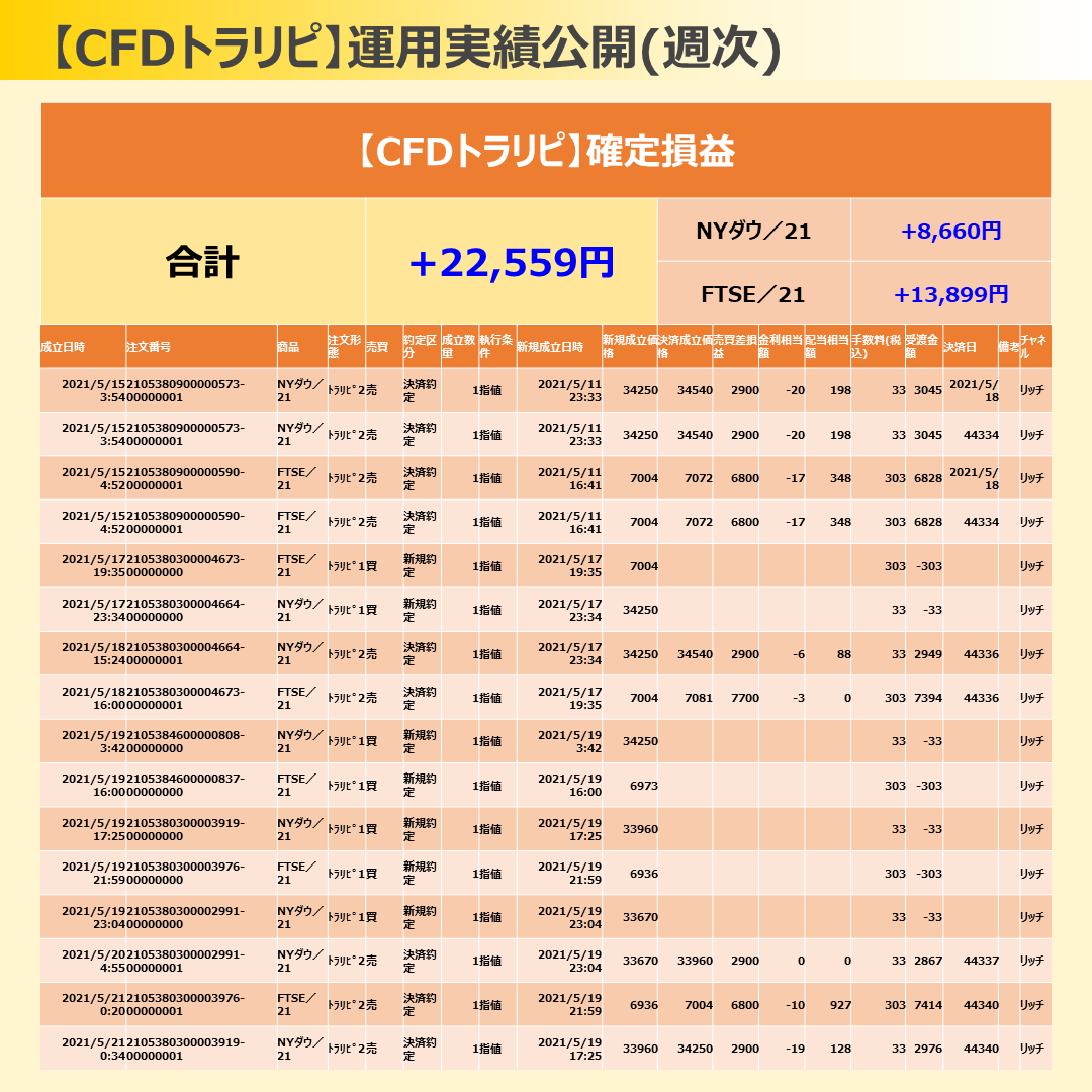 【CFDトラリピ】運用実績公開!(5月度3週目)