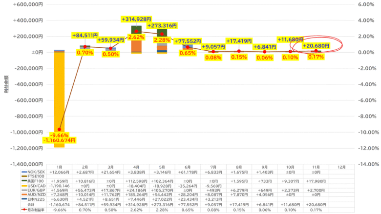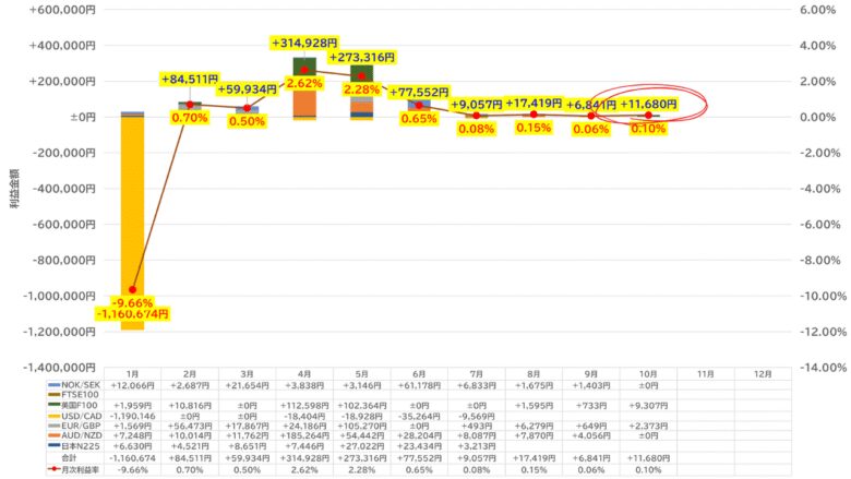 【トラリピ】運用実績公開!(1月度) ■確定損益FX:-1,169,263円(1,000万円)CFD:+8,589円(200万円)合計:-1,160,674円(1,200万円)※()内は運用金額 今月はもちろん月間目標達 ... ]]>