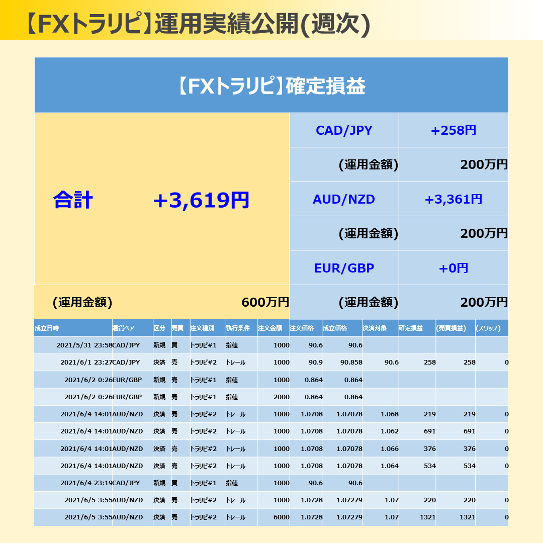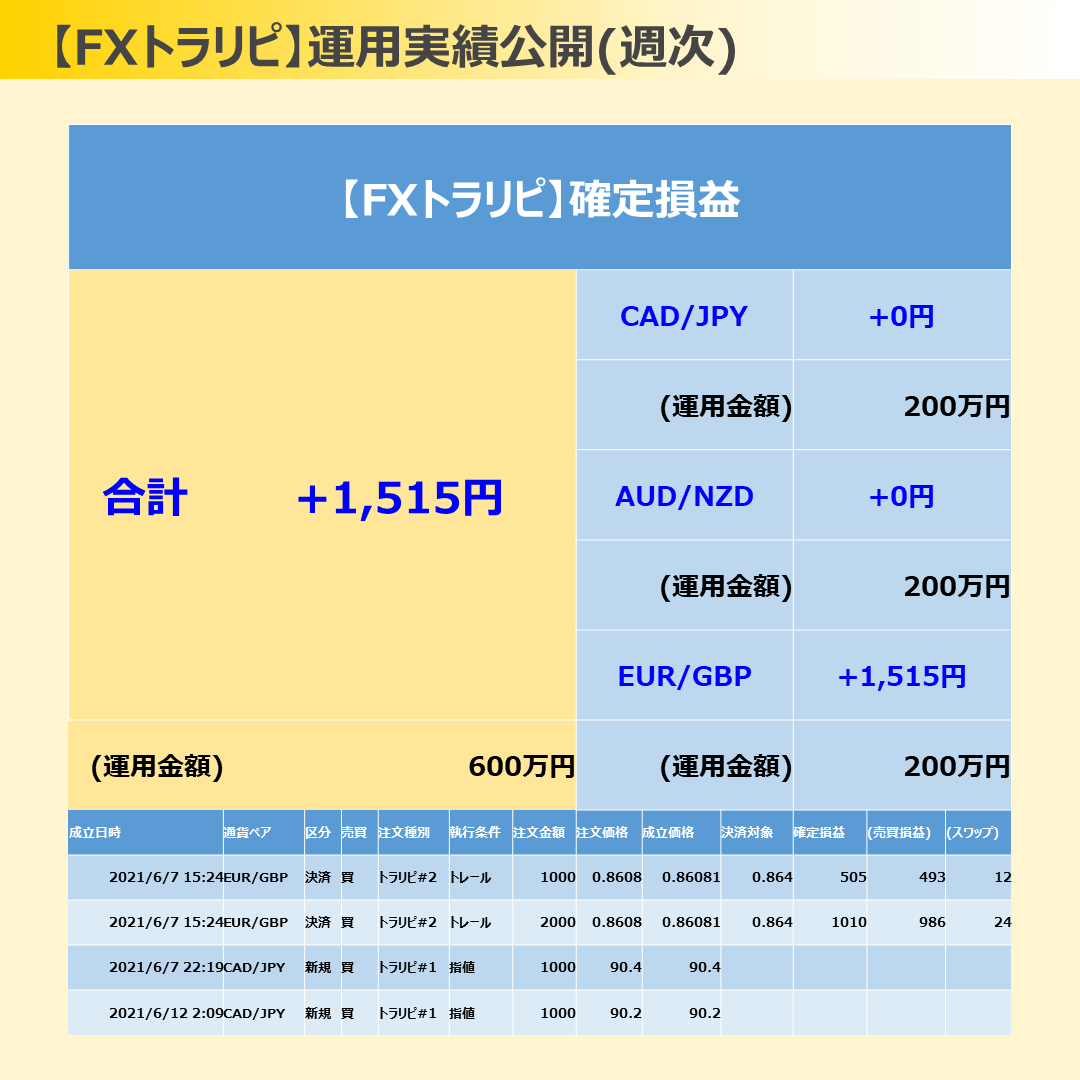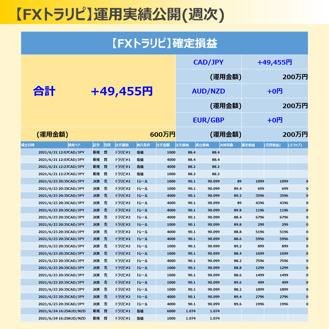 【自動売買】トラリピ運用実績をブログで公開!(週次集計)【2021年6月度】