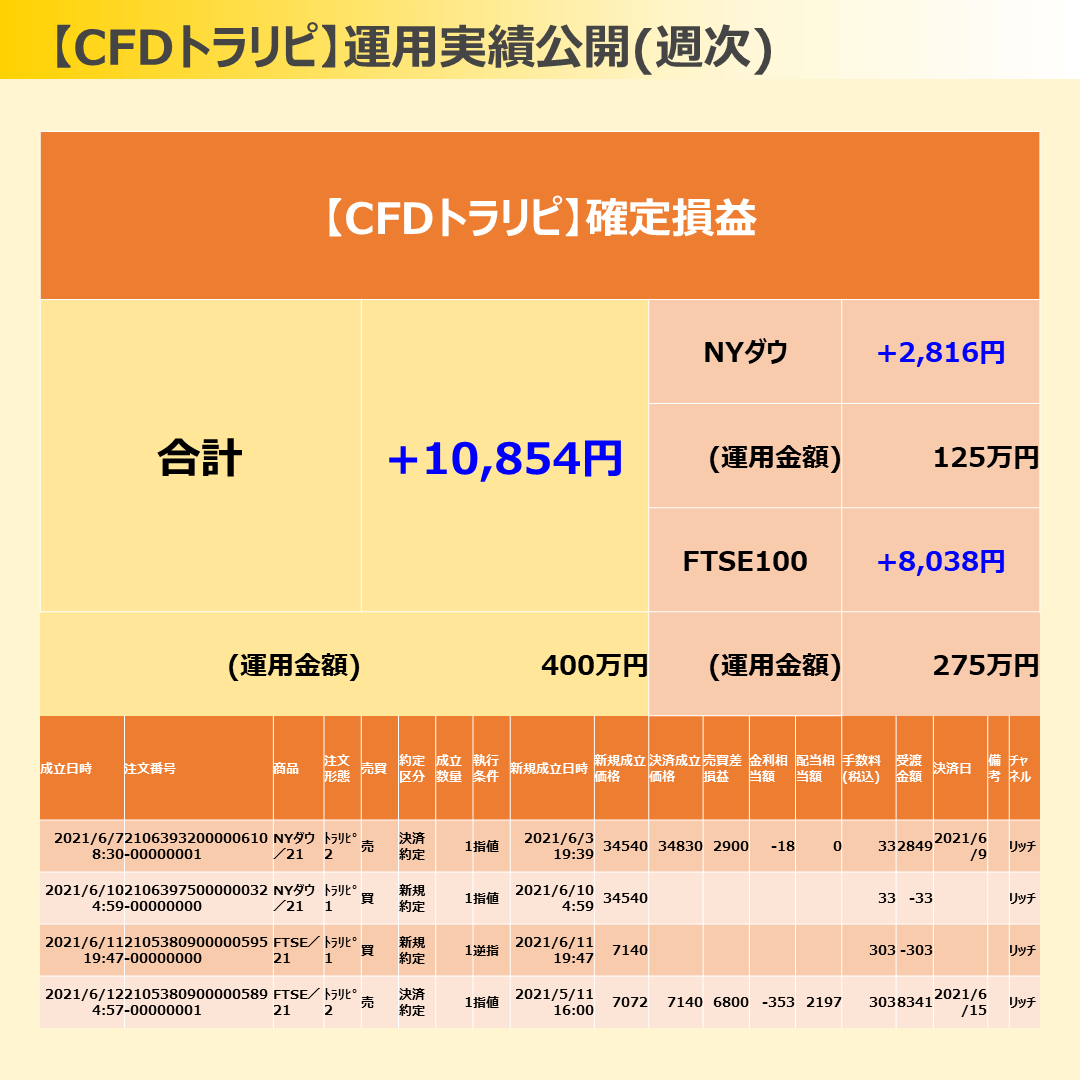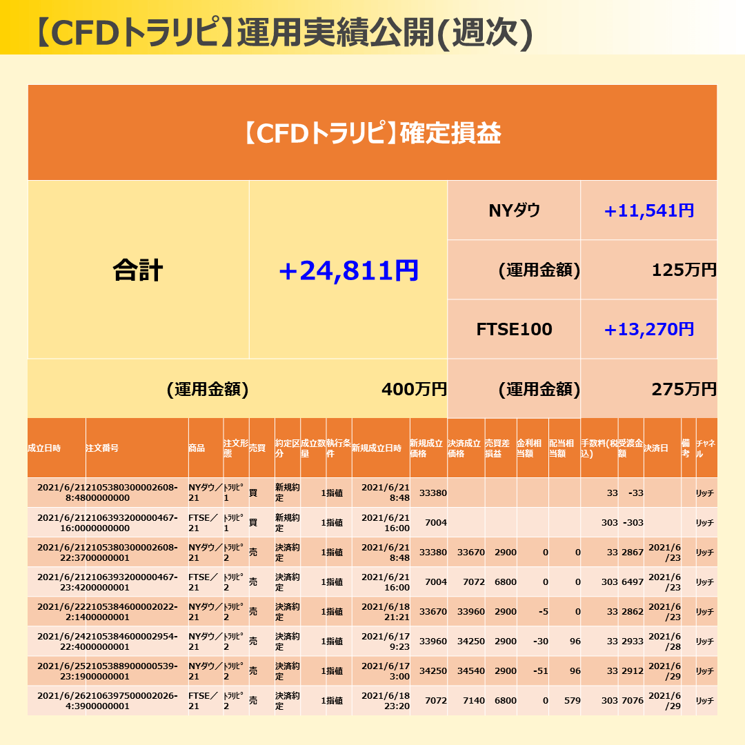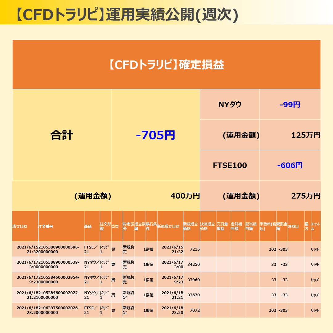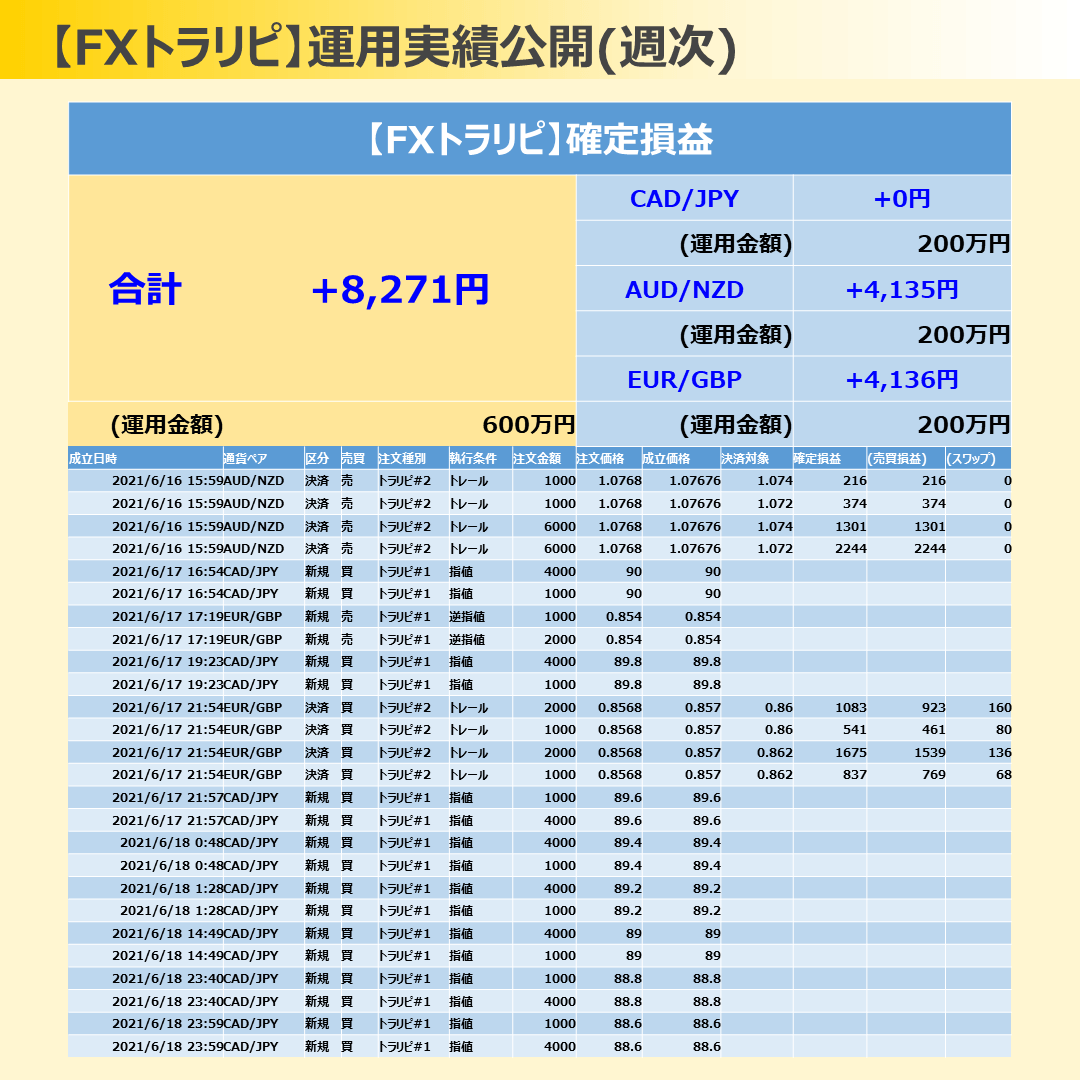 【自動売買】トラリピ運用実績をブログで公開!(週次集計)【2021年6月度】