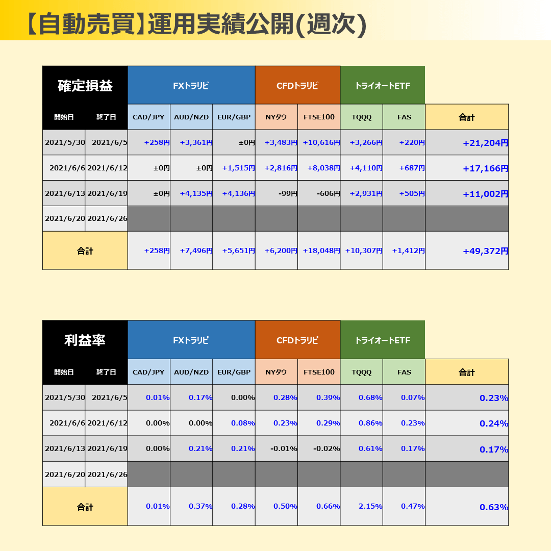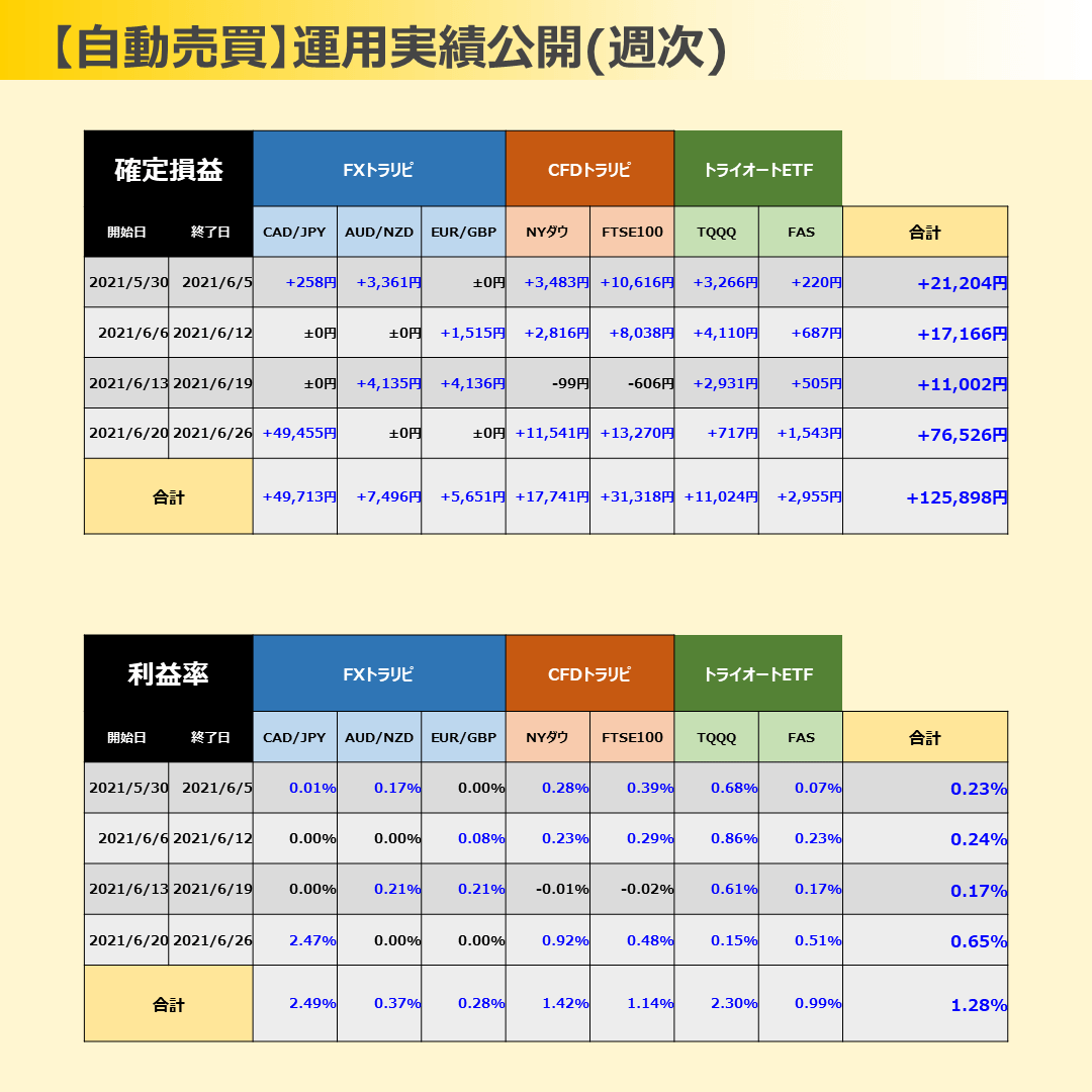 【自動売買まとめ】運用実績公開!(6月度3週目)