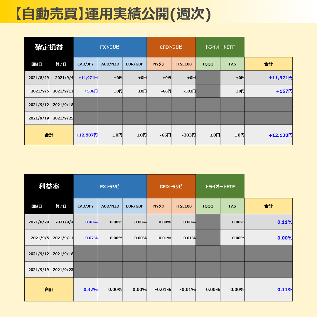 【自動売買まとめ】運用実績公開!(9月度2週目)