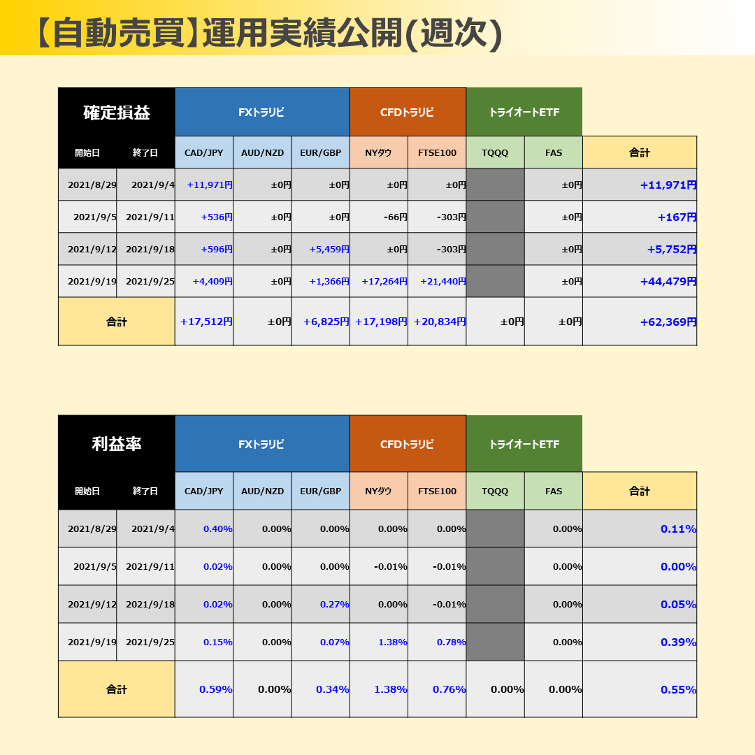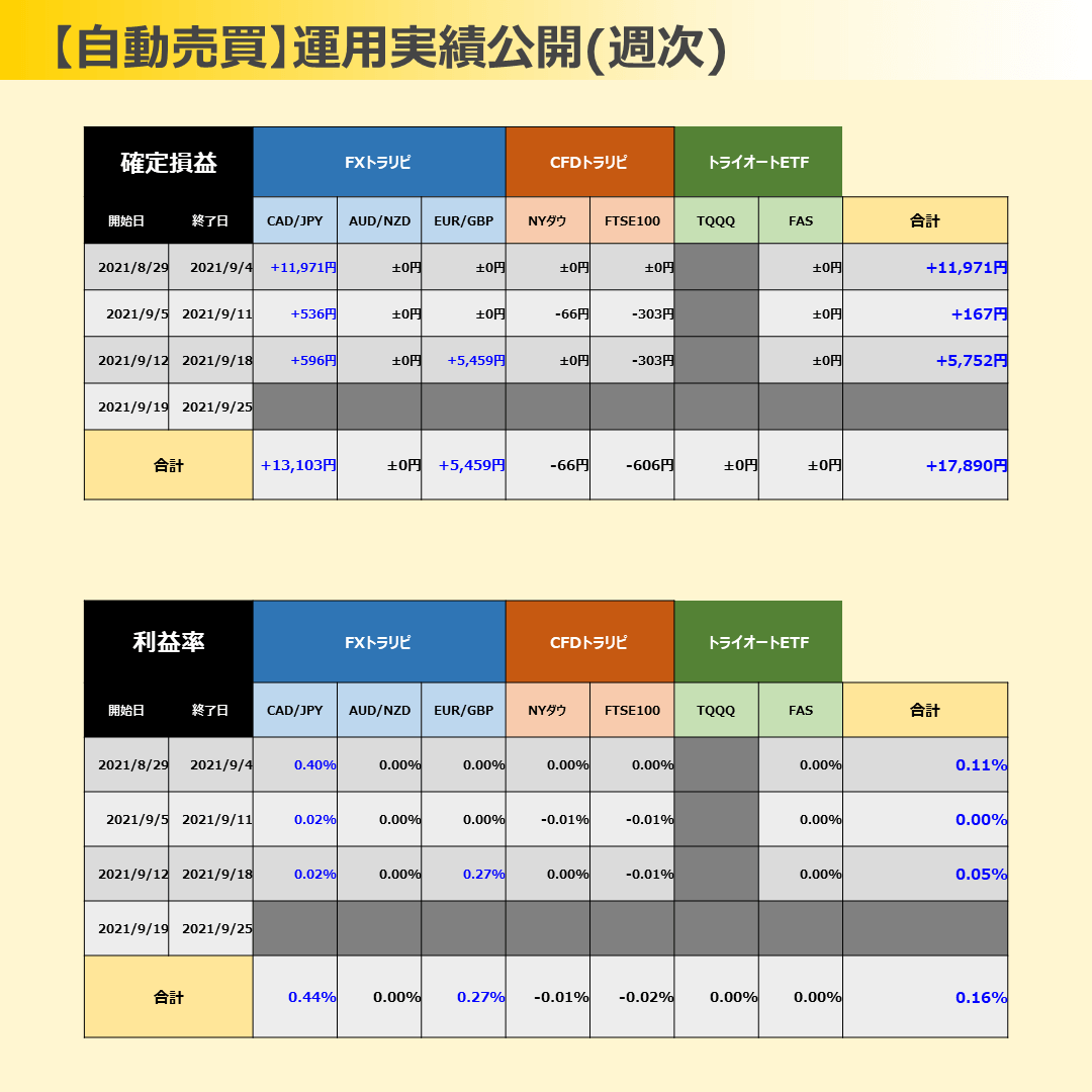 【自動売買まとめ】運用実績公開!(9月度3週目)