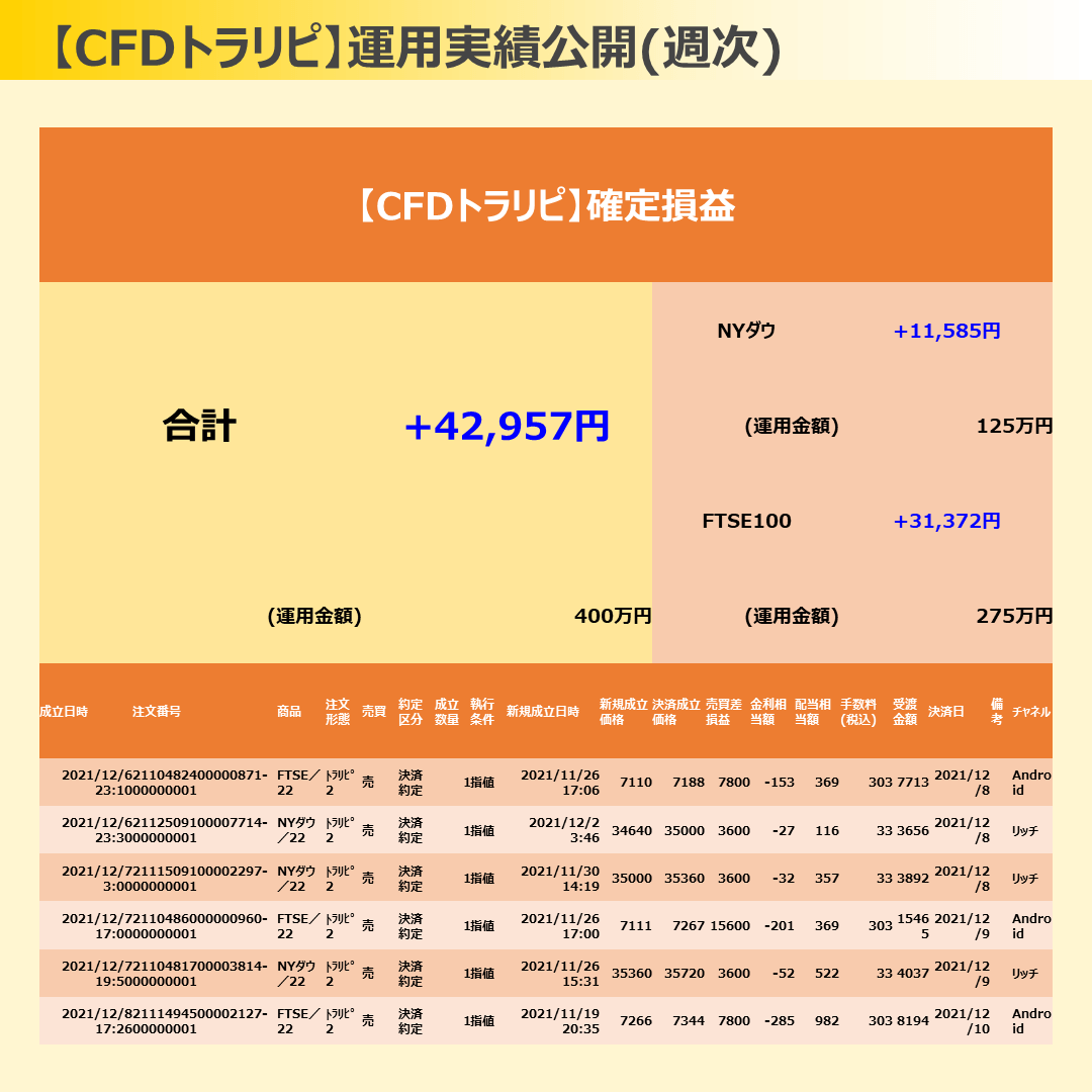 CFDトラリピも、NYダウで4決済、FTSEで2決済と絶好調!
