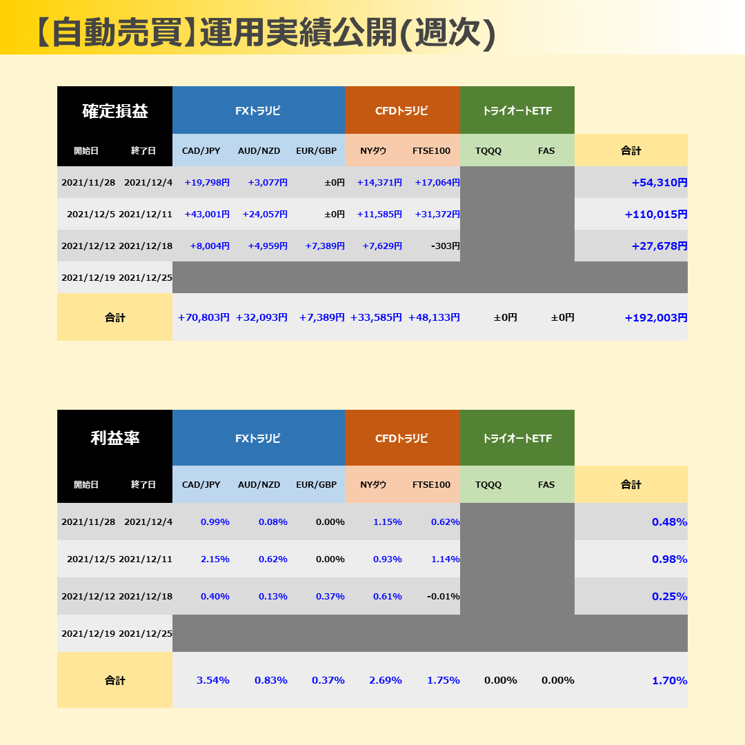 【自動売買まとめ】運用実績公開!(12月度3週目)