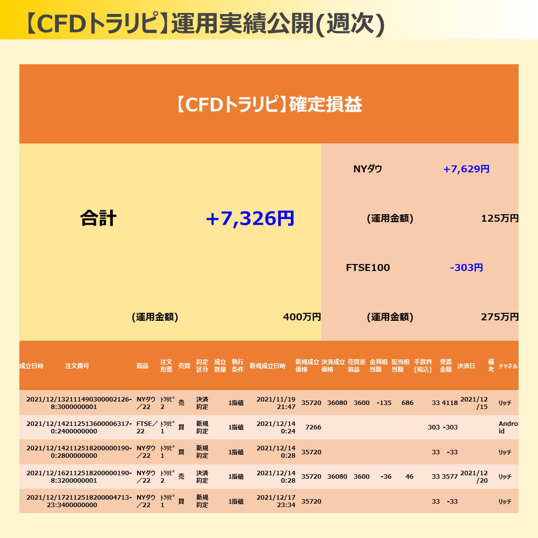 先週の種蒔きを早速回収し、さらに回収だけでなくしっかりと種蒔きもできているので、トラリピの本領発揮の週でした。