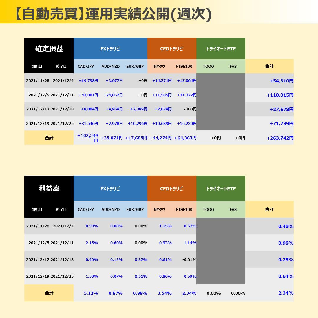 【自動売買まとめ】運用実績公開!(12月度4週目)