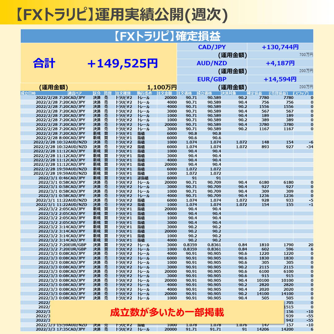 今週は確定損益+85,035円でした!