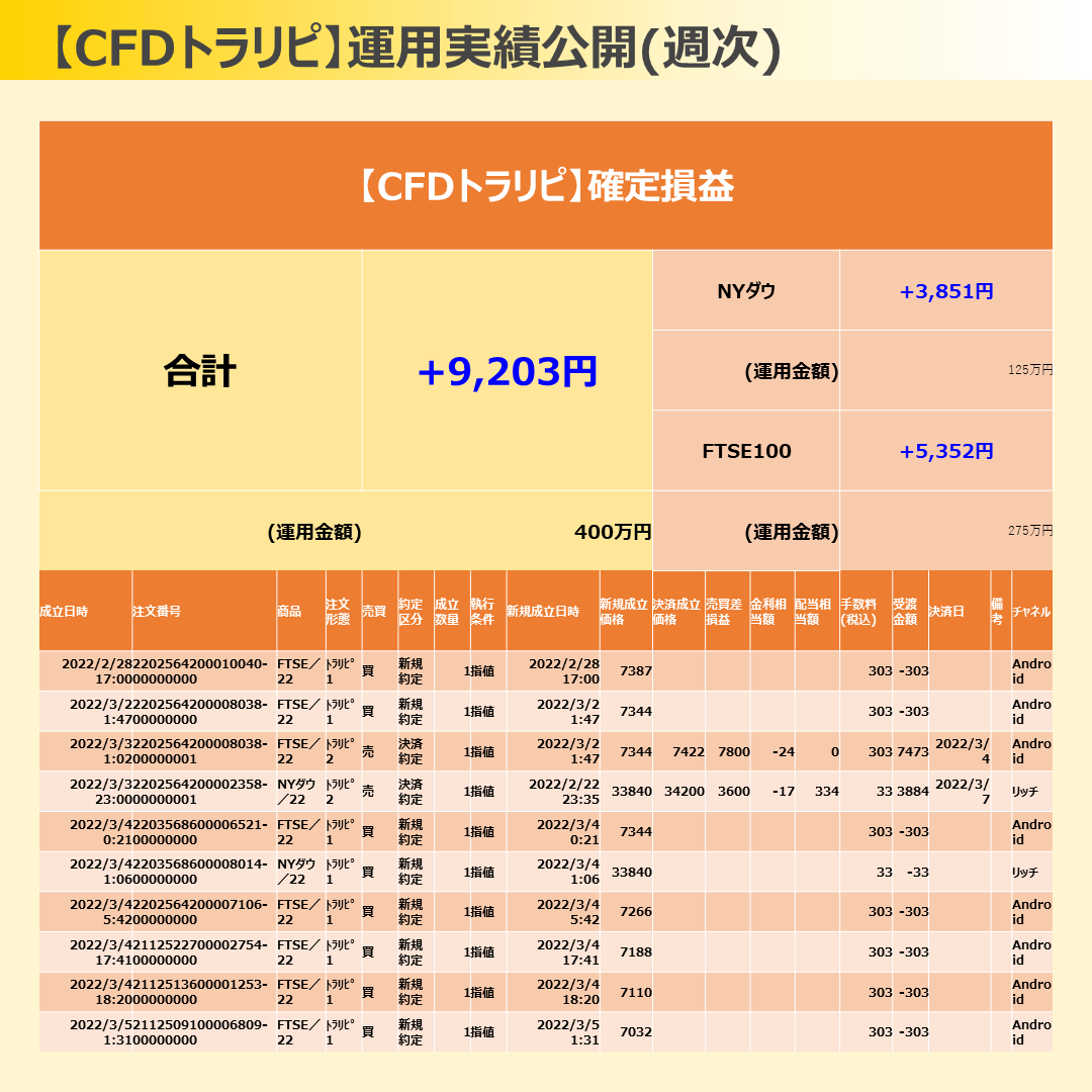 CFDトラリピ:+9,203円(400万円)