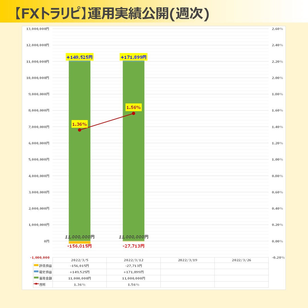 FXトラリピ:+32,262円(1,064万円)