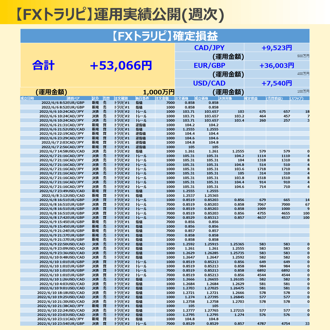 今週は確定損益+52,066円でした!